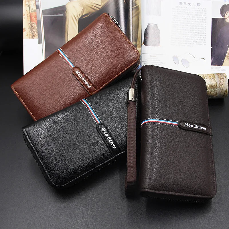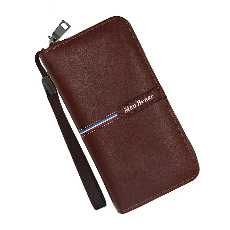 Stay organized with this long men's wallet that has a large capacity for all your essentials. It features a business design with a zipper closure and a mobile phone bag.