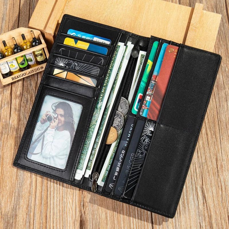 Men's Long Cow Leather Wallet Gift Card Holder