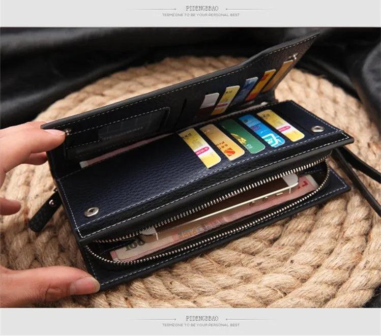 Men's Long Wallet Business Purse PU Leather Zipper Clutch