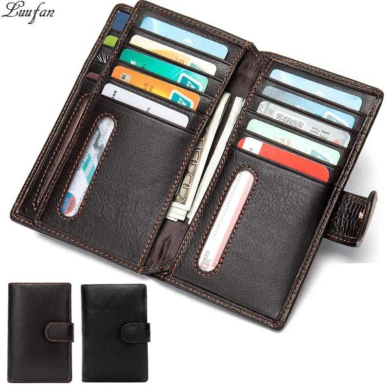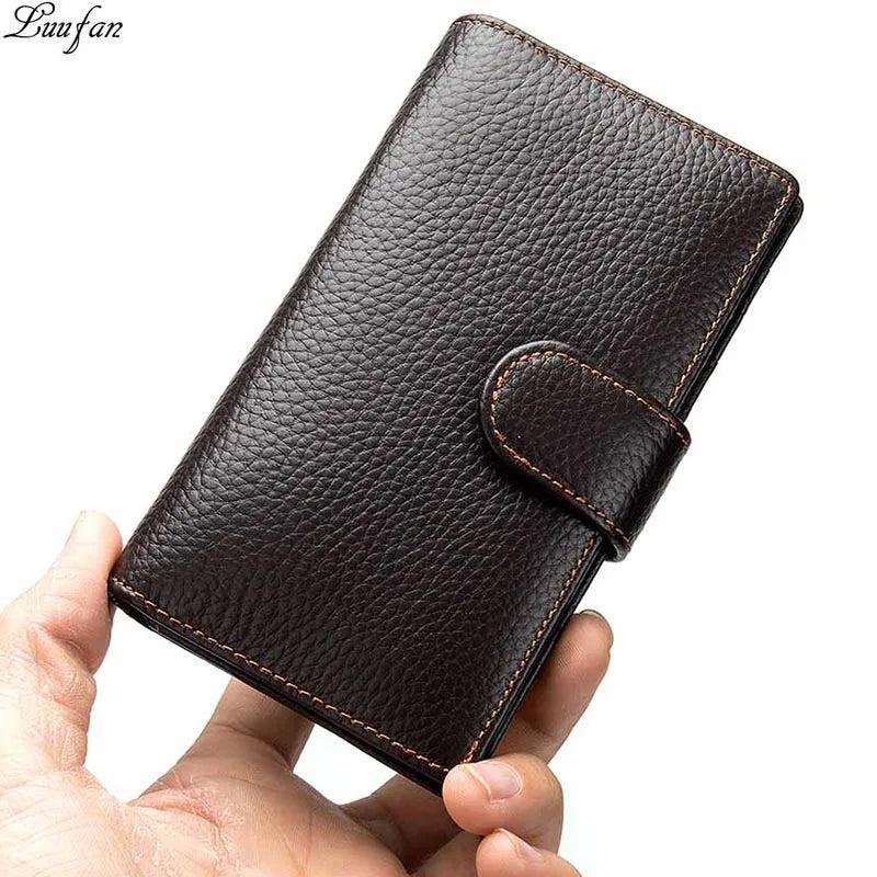 Men's Long Wallet Cow Leather Trifold Clutch Business Purse
