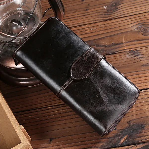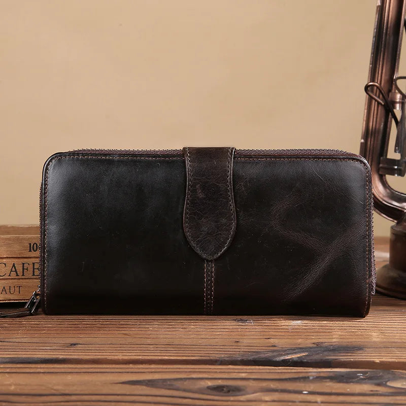Men's Oil Wax Retro Leather Wallet Clutch Bag