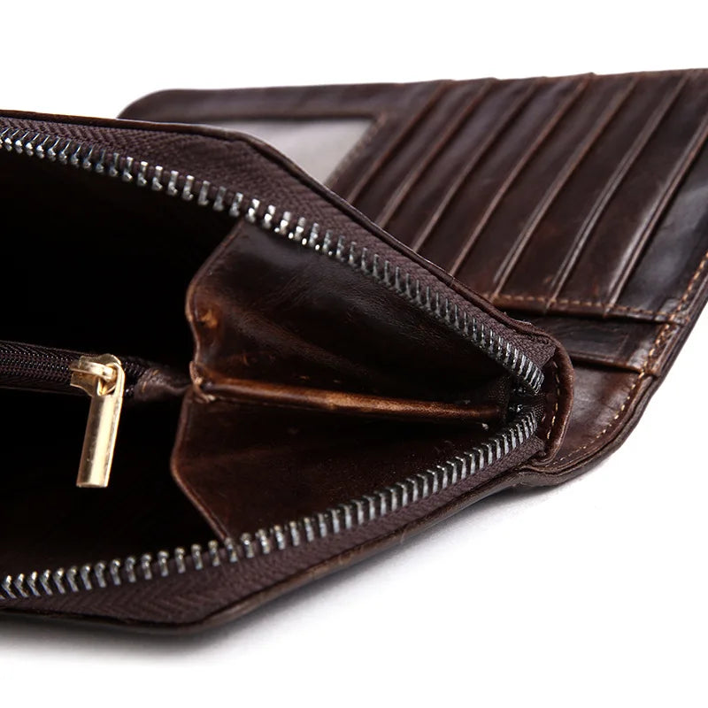 This men's wallet is crafted from oil wax retro leather, offering high capacity for organizing essentials. It can also double as a cell phone clutch bag.