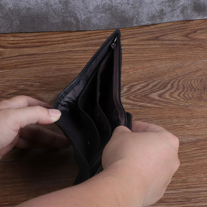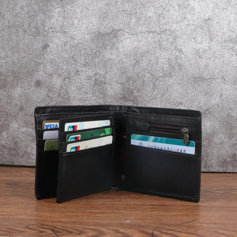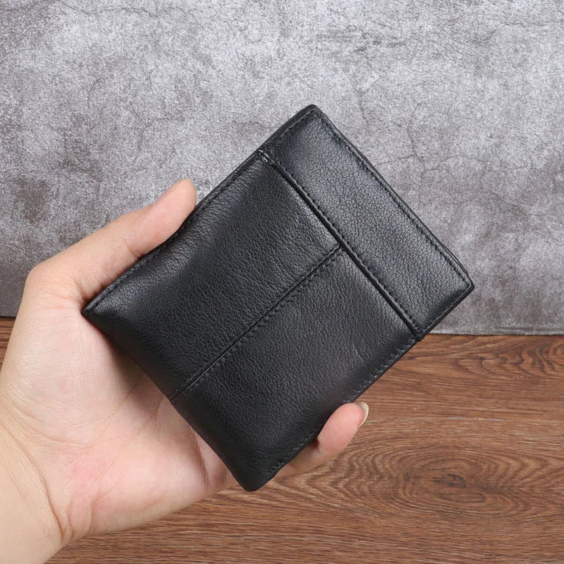 This short leather wallet for men is made of first layer cowhide, offering a casual and all-match style. The stitching adds a retro touch to the design.