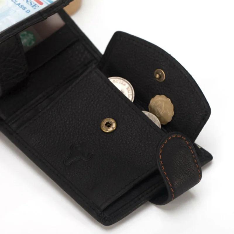 This men's leather wallet features RFID protection to prevent theft of personal information. It has a secure hasp closure and offers multiple slots for cards. The three-fold design includes a photo album for convenience.