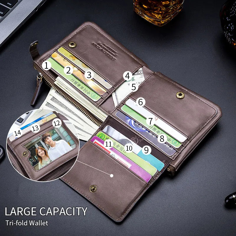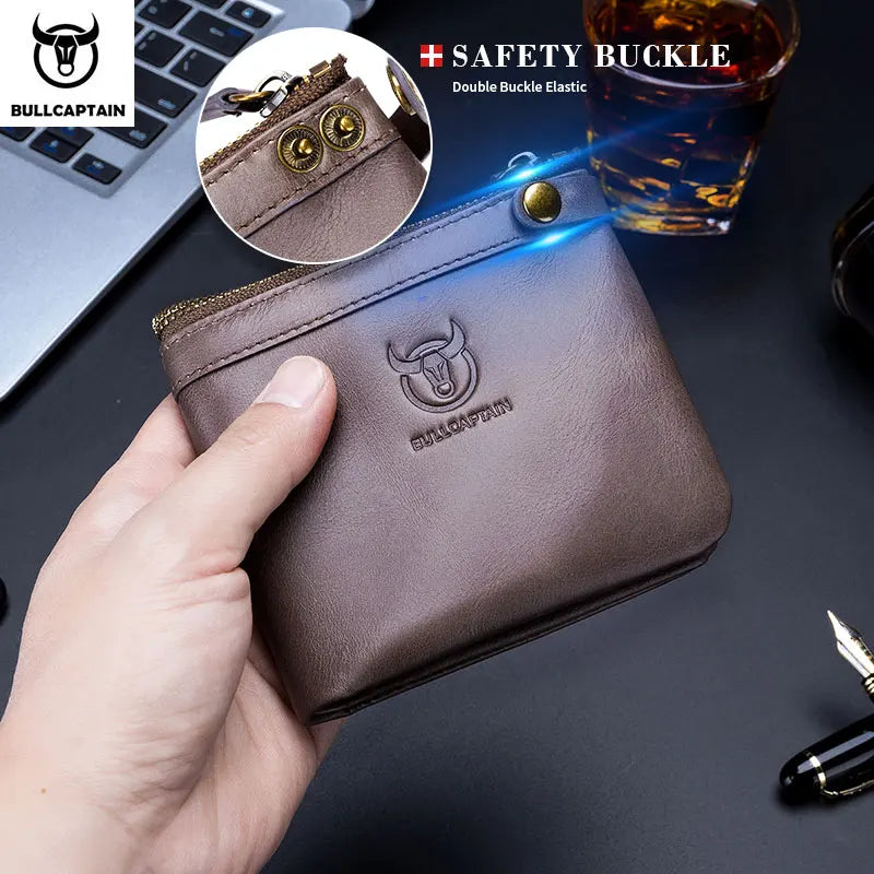 Stay stylish and secure with this men's leather wallet featuring RFID protection. The smart zipper buckle adds a touch of modern convenience.