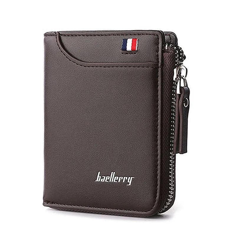 - Stylish men's short wallet with zipper coin bag