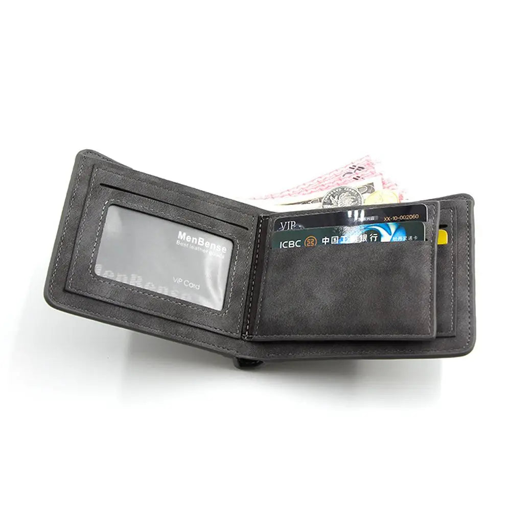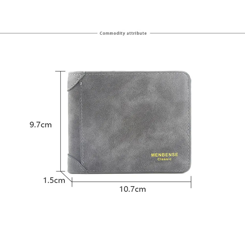 This men's wallet is made of frosted leather, featuring a retro design with two-fold construction. It is thin and ideal for youth. The wallet has multiple card slots for convenient storage.