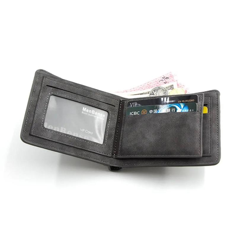 This men's wallet is crafted from frosted leather with a retro design. It features a two-fold structure for a slim profile and offers ample card slots. Ideal for youth, this multi-card wallet is a practical and stylish accessory for men.