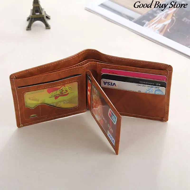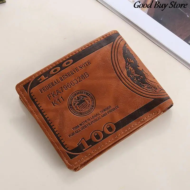 Men's Short Wallet Money Clip Foldable Leather Wallets Brown