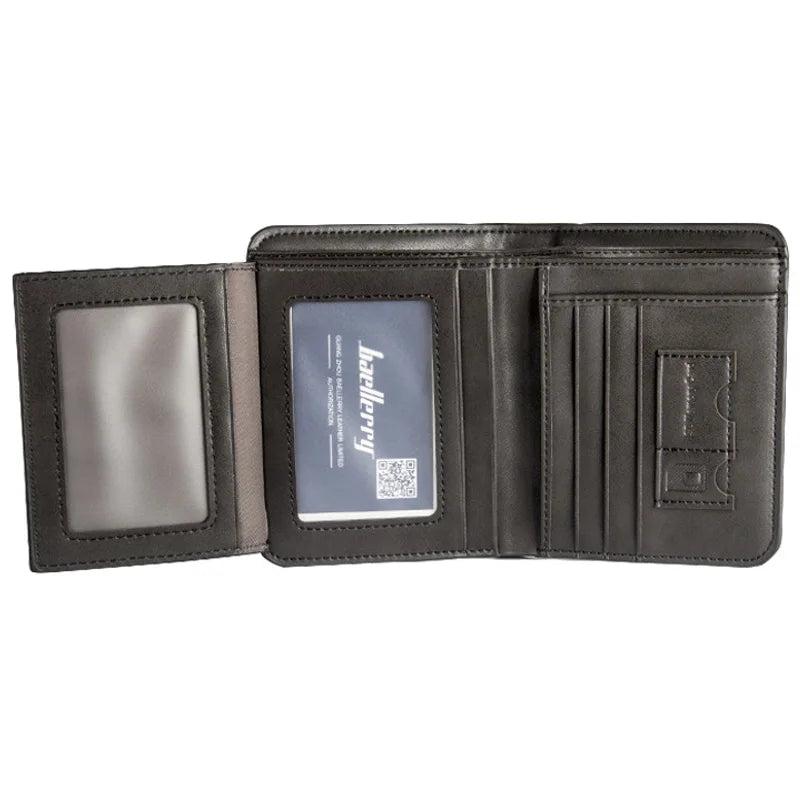 This men's short wallet is made of high-quality PU leather, featuring a retro design. It has a soft texture and multiple compartments for organizing cash and cards.
