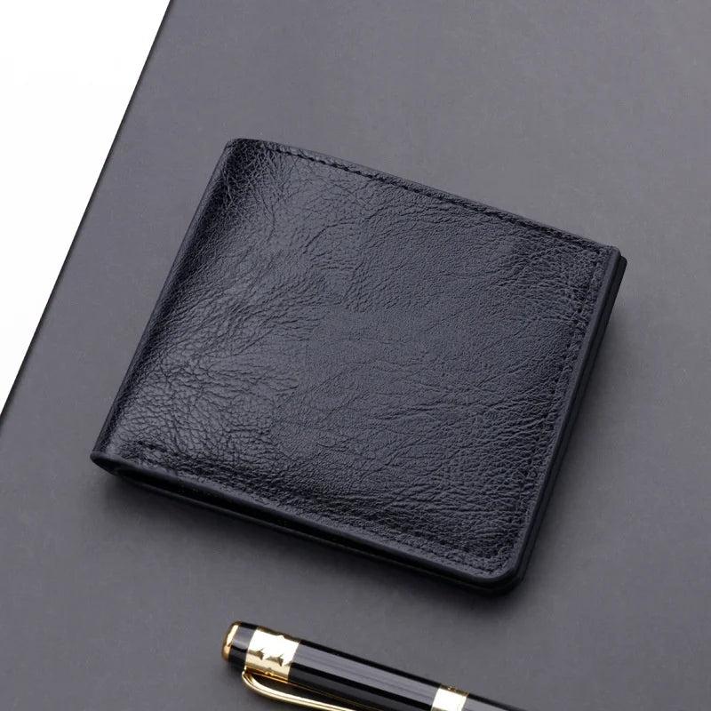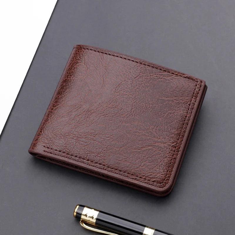 This men's wallet is made of high-quality PU leather, featuring a retro design. It has multiple credit card/ID holders for easy organization. The slim design allows for a comfortable fit in your pocket while providing ample storage space.