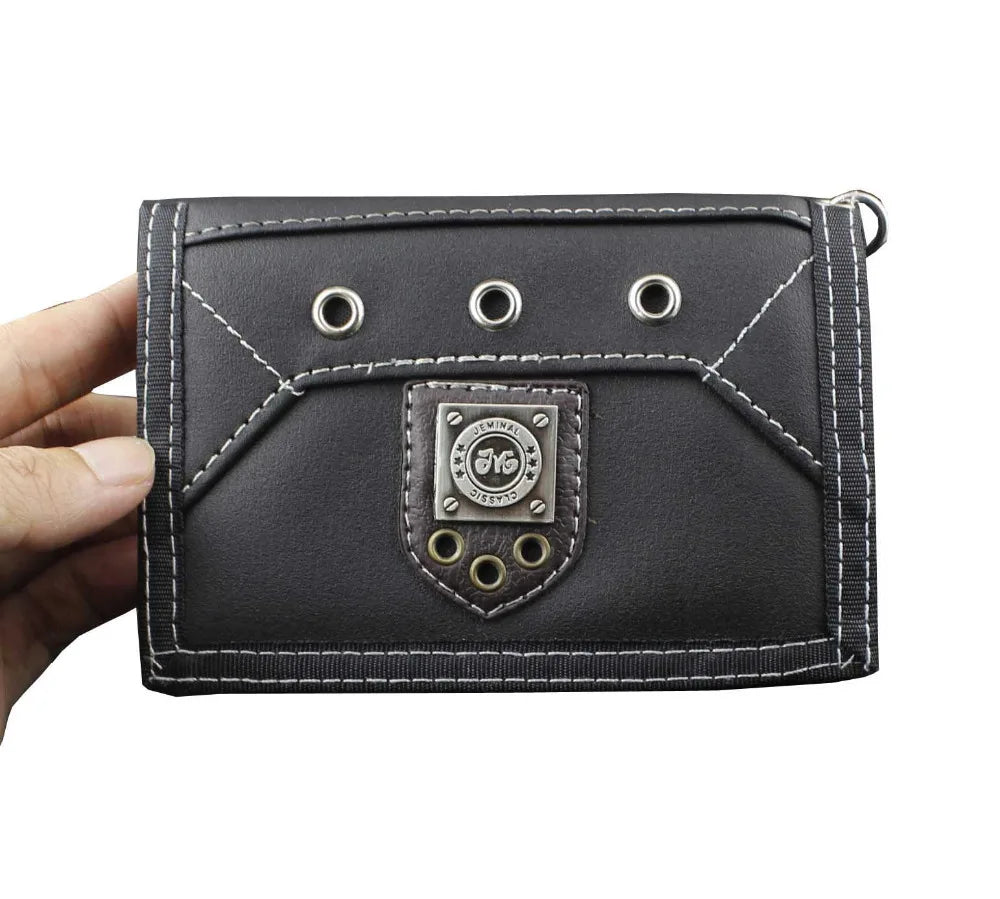 Mens Teen Steel Biker Style Canvas Trifold Leather Wallet Purse With Chain