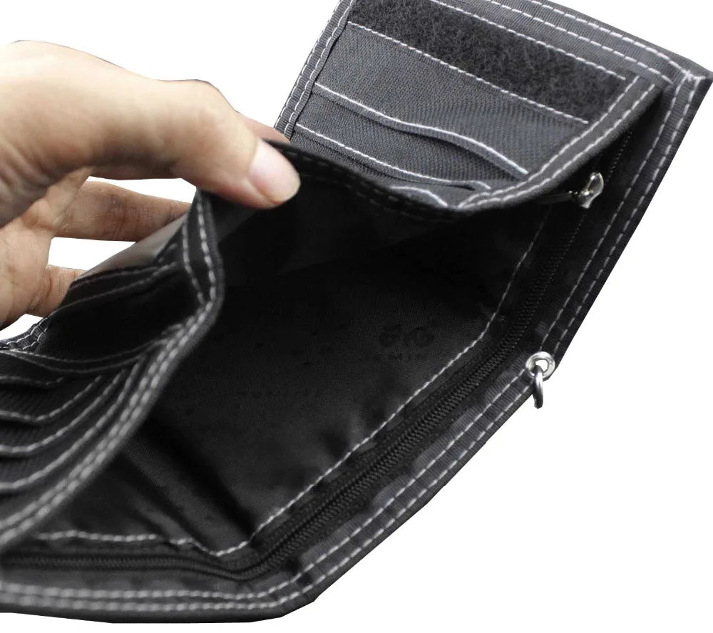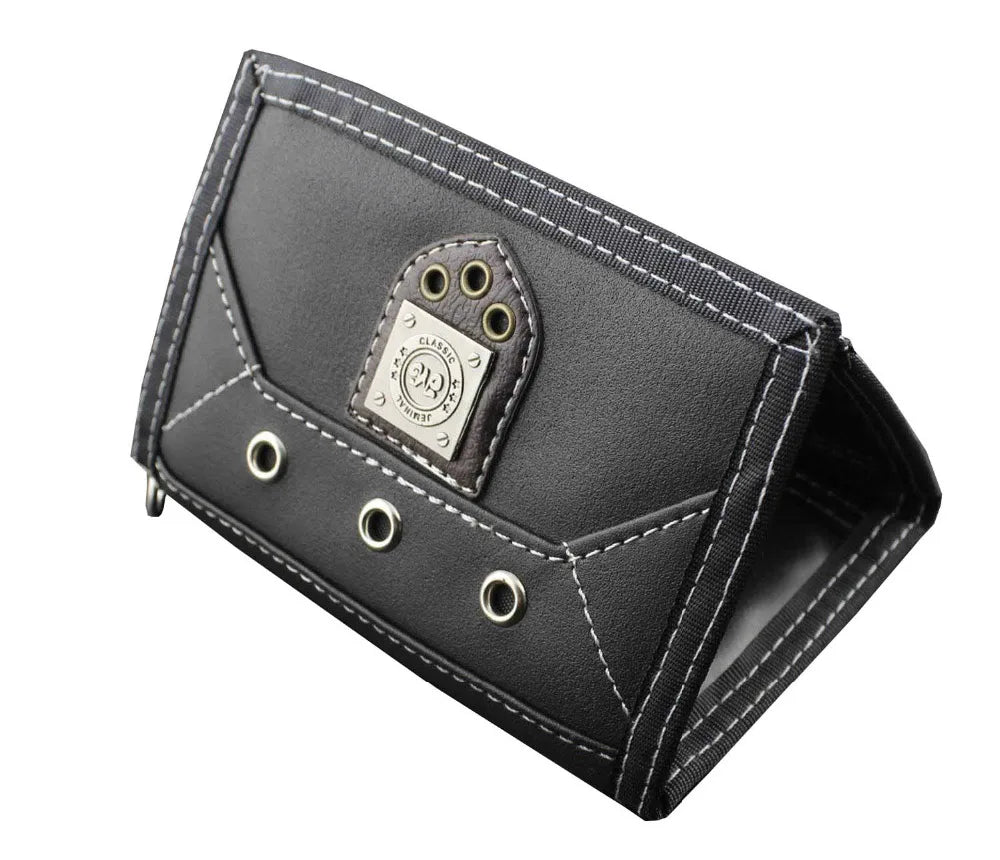 Stay stylish and organized with this trifold wallet featuring a durable canvas and leather construction perfect for biker style enthusiasts. Includes a detachable chain for added security.
