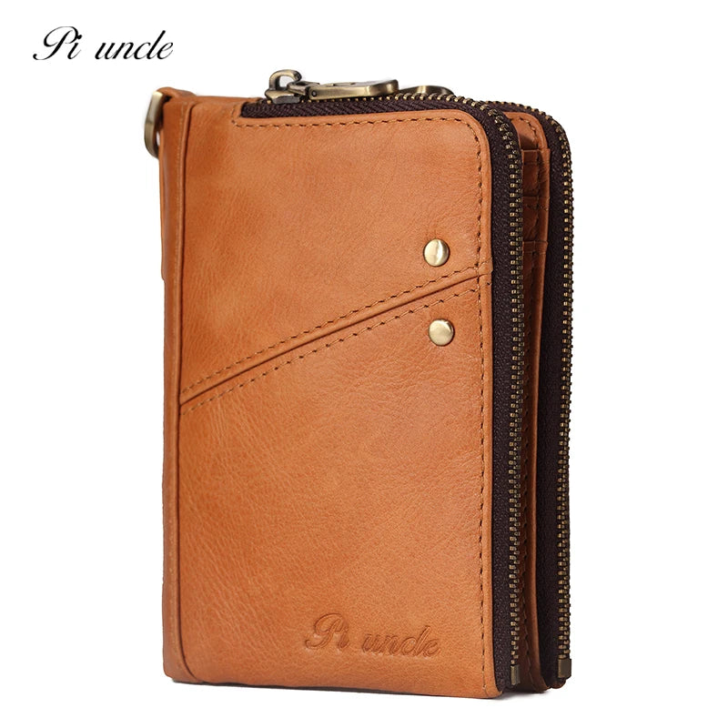 Men's Thin Leather Wallet High Oil Wax Cowhide Short Zipper Cards Purse