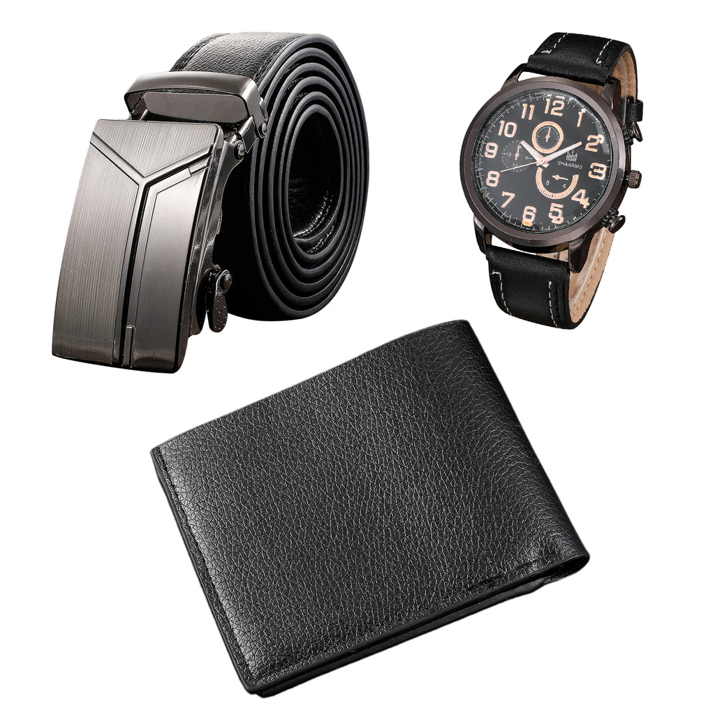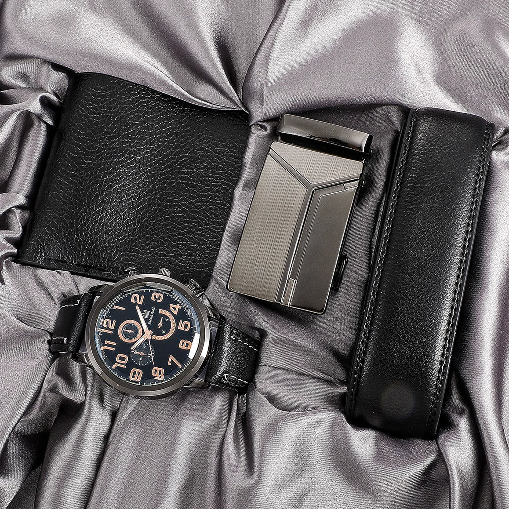 Men's Watch+Wallet+Belt Set Father's Birthday 3pcs/set Dad Boyfriend