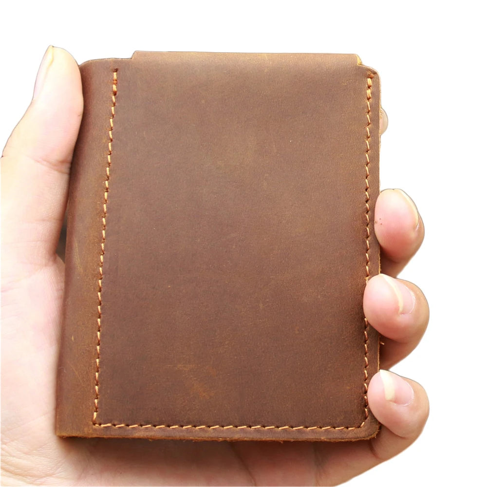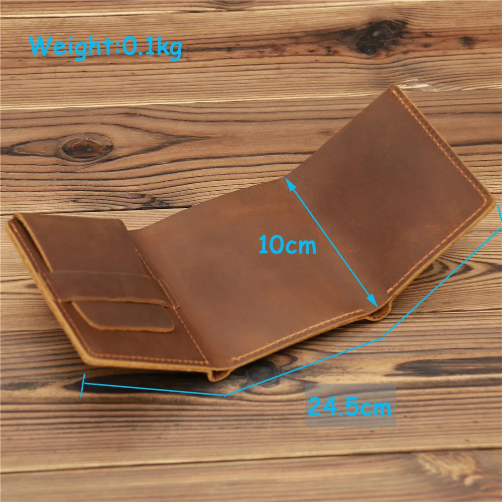 Minimalist Trifold Leather Men Wallet Crazy Horse Real Leather