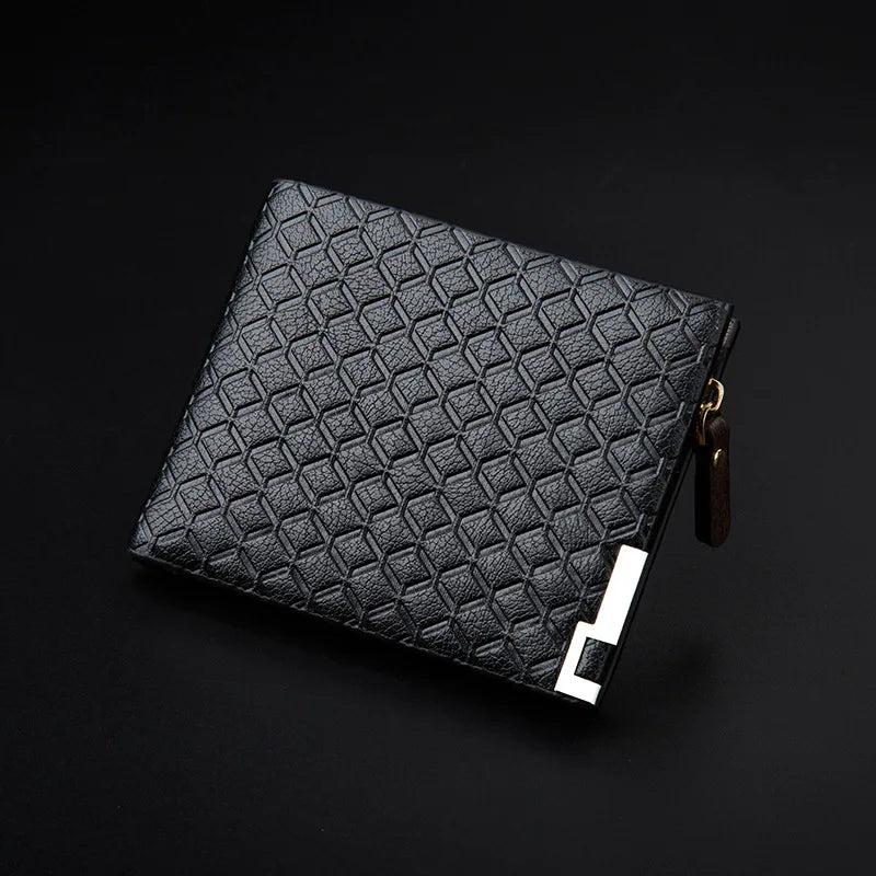 Description:This men's wallet is made of natural leather with a knurling design. It features a retro style with a small zipper, three-fold construction, and a slim profile.Features: Genuine natural leather construction Retro style with knurling design Small zipper for added security Three-fold design for organization Slim profile for easy carrying...