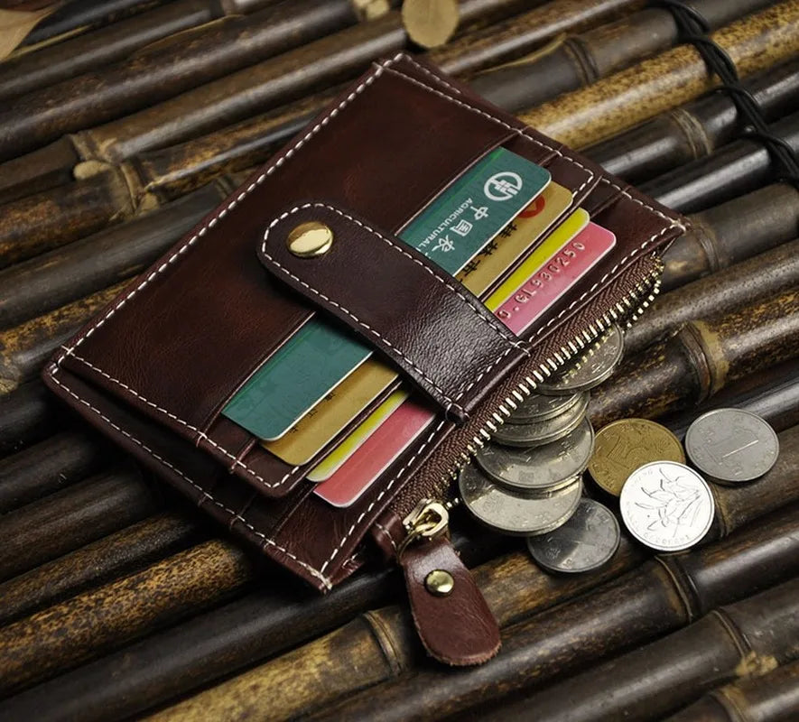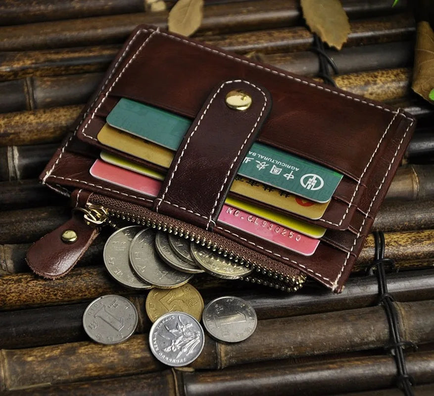 Oil Wax Leather Men's Wallet Multi-card Button Mini Small Card Coin Bag