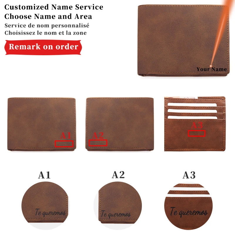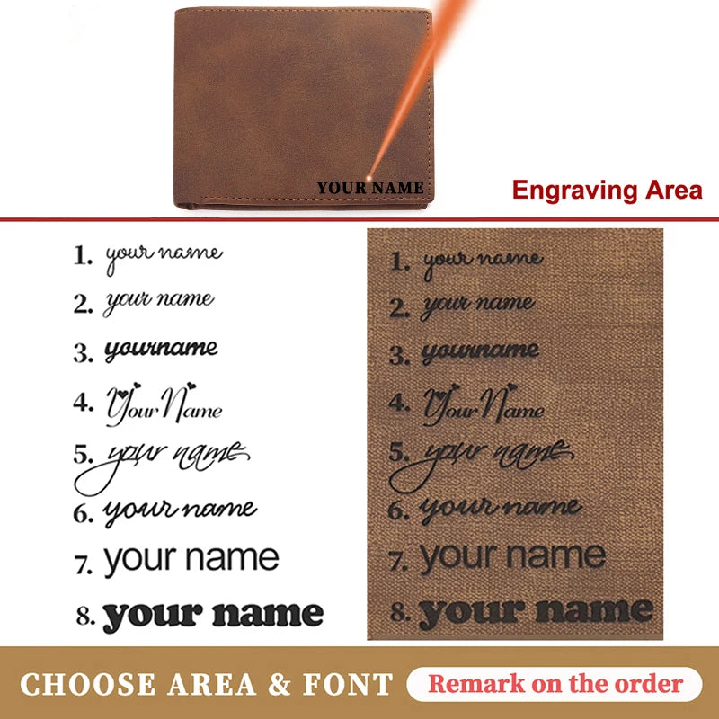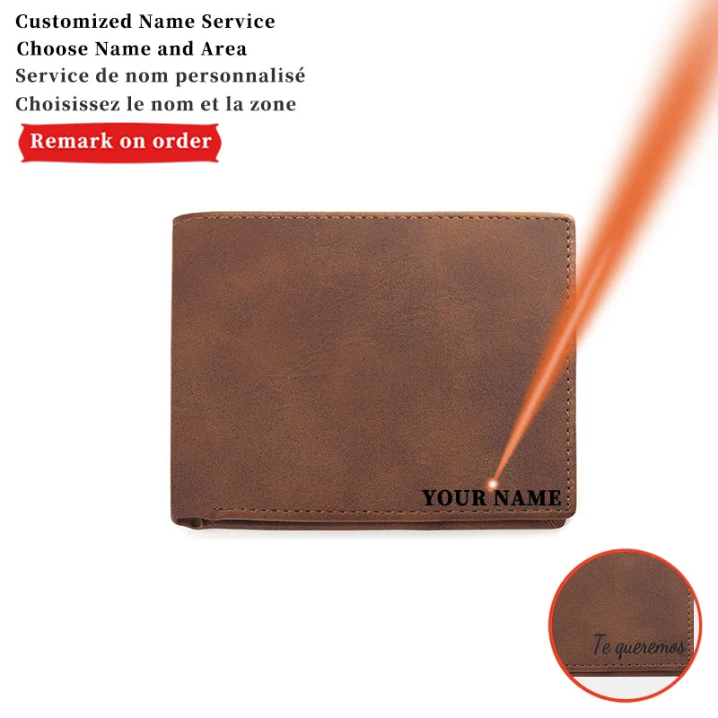 Description:This retro brown wallet is stylish and unique with laser-engraved name option. The ultra-thin design makes it perfect for everyday use.Features: Men's PU leather wallet with laser-engraved name Retro brown color adds a touch of vintage style Ultra-thin and compact for easy carrying Bi-fold design with multiple card slots Perfect...