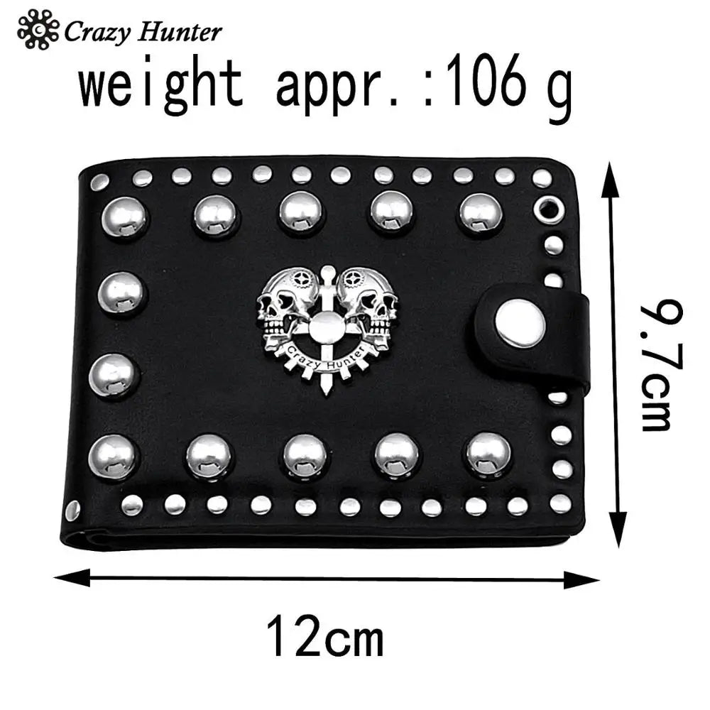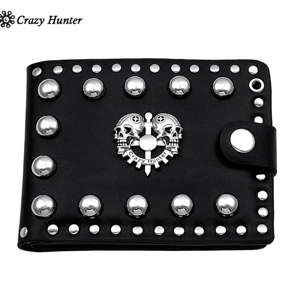 - Stylish leather wallet with studded skull design