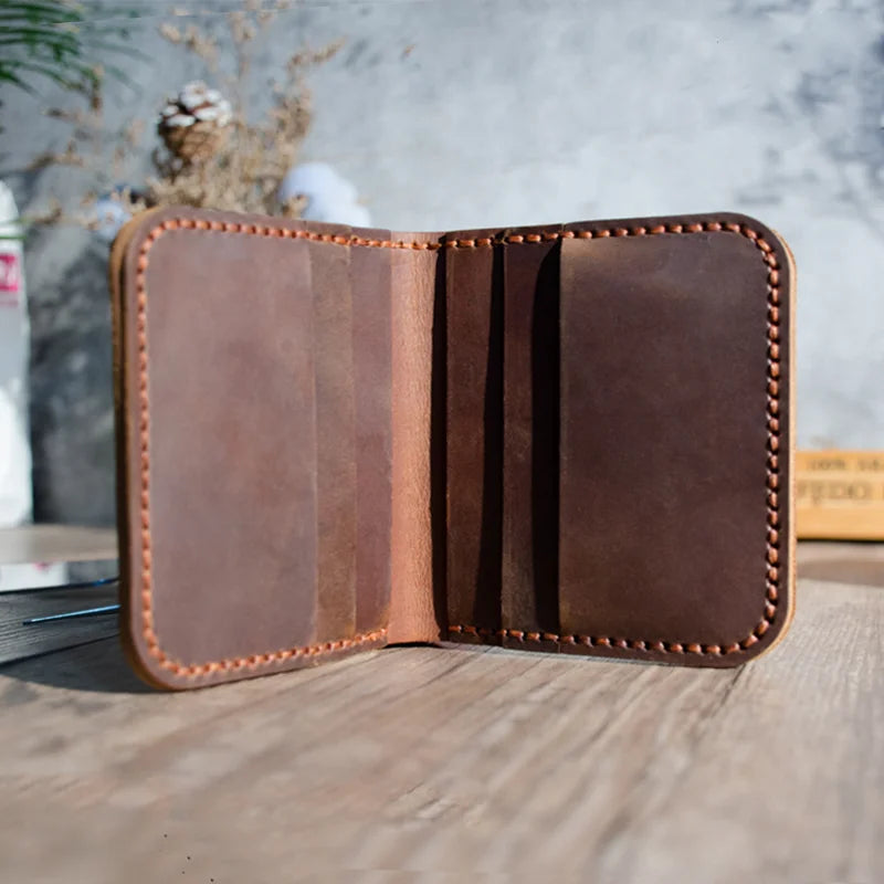 This minimalist men's wallet is made from high-quality real leather, offering durability and a sleek design. Perfect for everyday use, this small wallet fits comfortably in your pocket or bag.