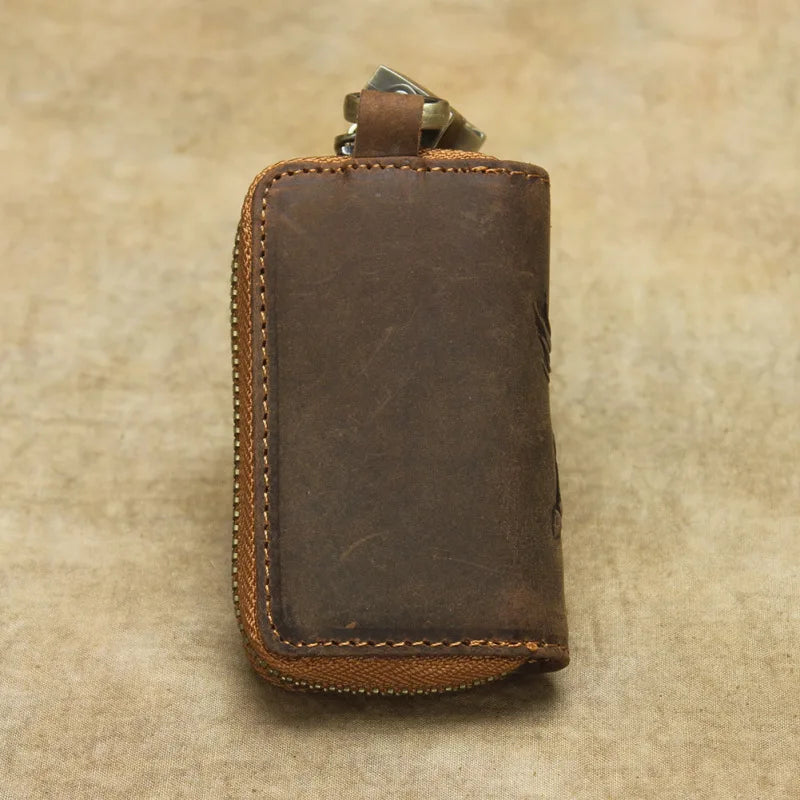 Keep your keys organized with this stylish Retro Cow Leather Keychain Wallet. Made of genuine cow leather, it features a key pocket and a secure key holder. The perfect accessory for men on the go.