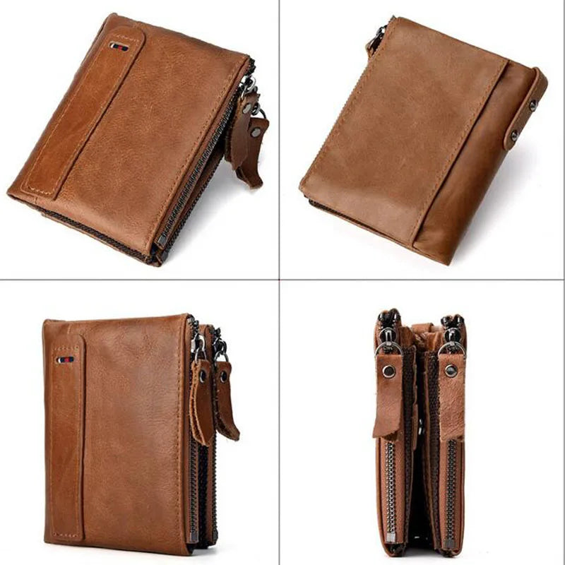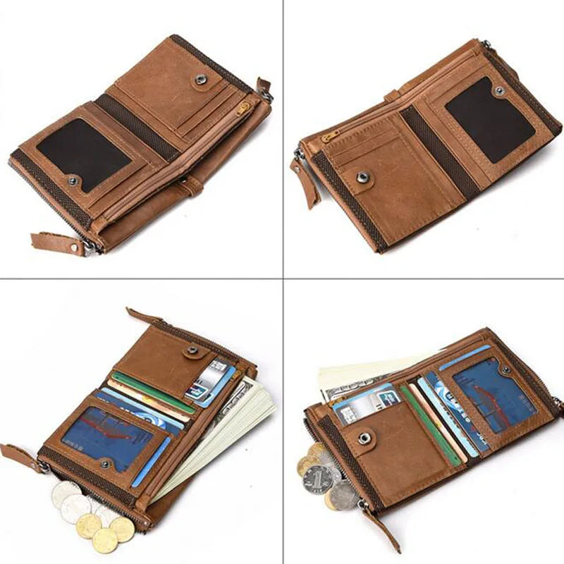 This men's wallet is made of high-quality leather with a retro design. It features a short clutch style, perfect for carrying money and cards.