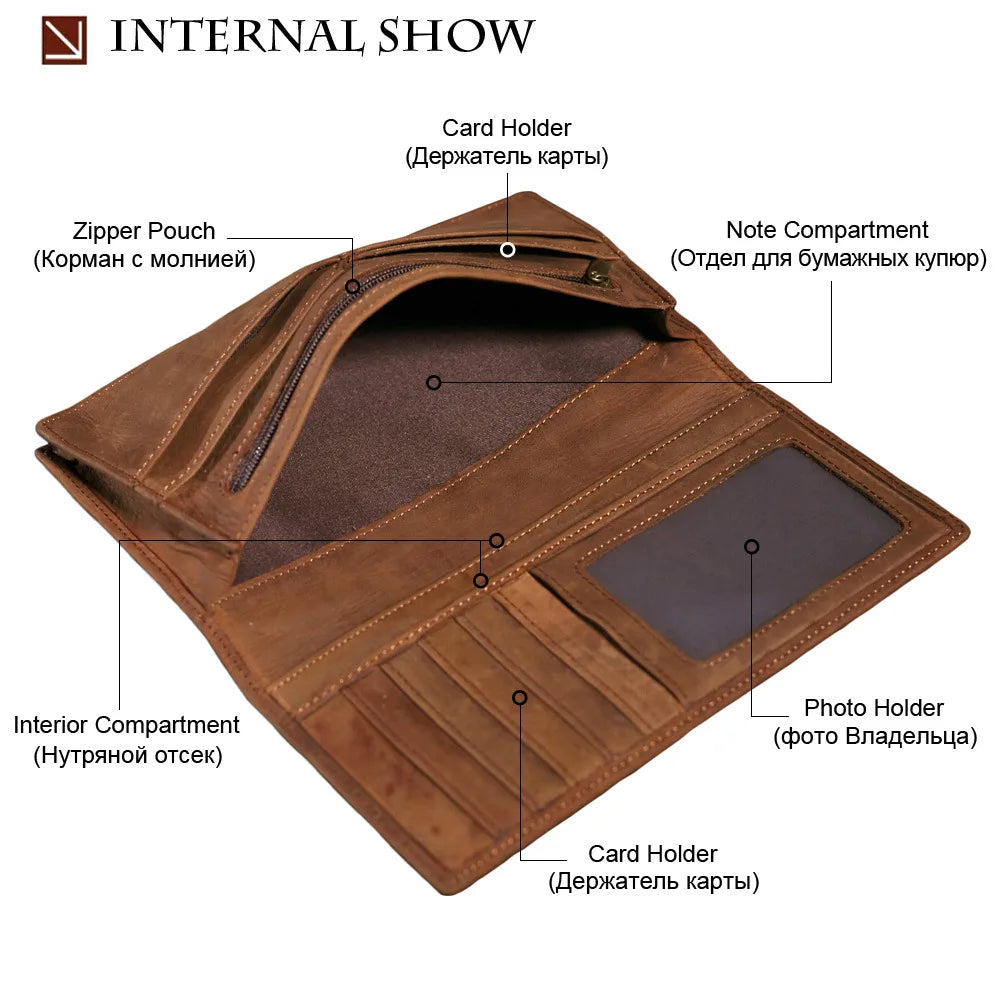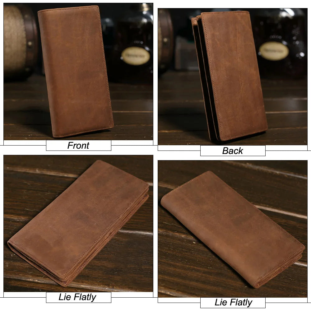 Retro Men Long Wallet Crazy Horse Leather Clutch Wallet