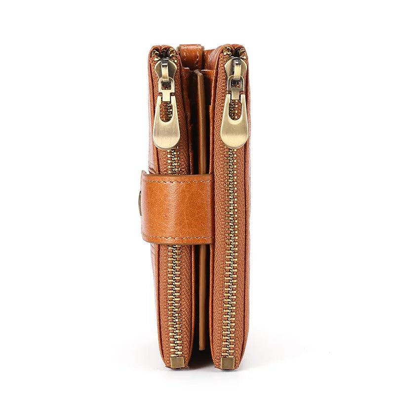 Keep your cards and cash safe with this sleek leather wallet for men. Featuring RFID blocking technology, this bifold wallet with a zipper closure is both stylish and secure. The soft brown red coffee color adds a touch of sophistication to your everyday carry.