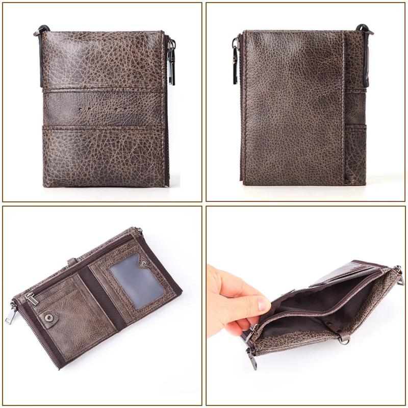 This men's wallet features RFID blocking technology to protect your credit cards and personal information. The double zipper design provides easy access to your belongings. Made of high-quality leather, this wallet is durable and stylish.