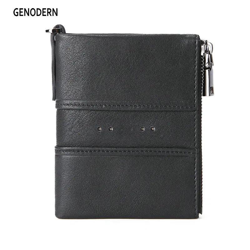 RFID Blocking Leather Double Zipper Wallet for Men Short Male Purse