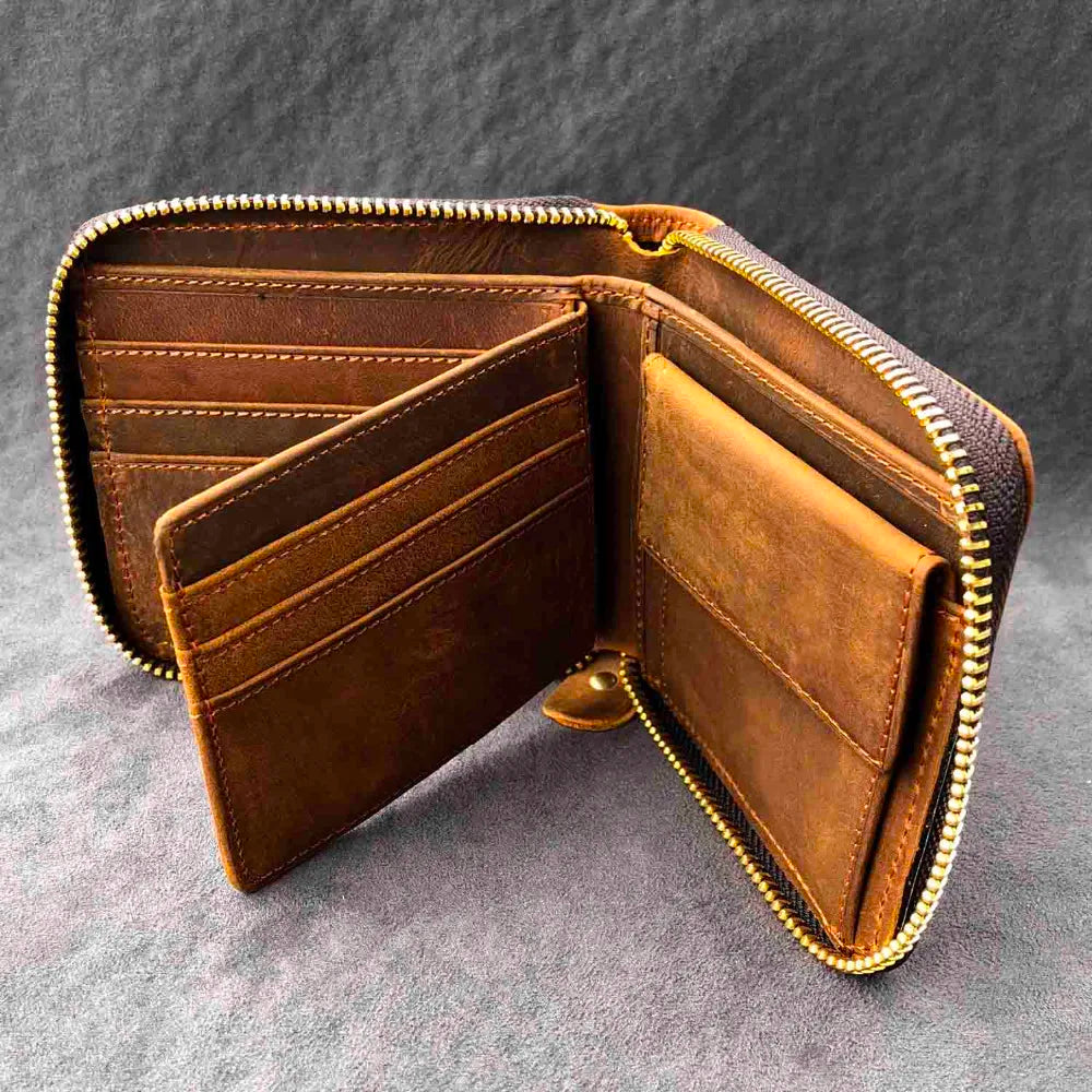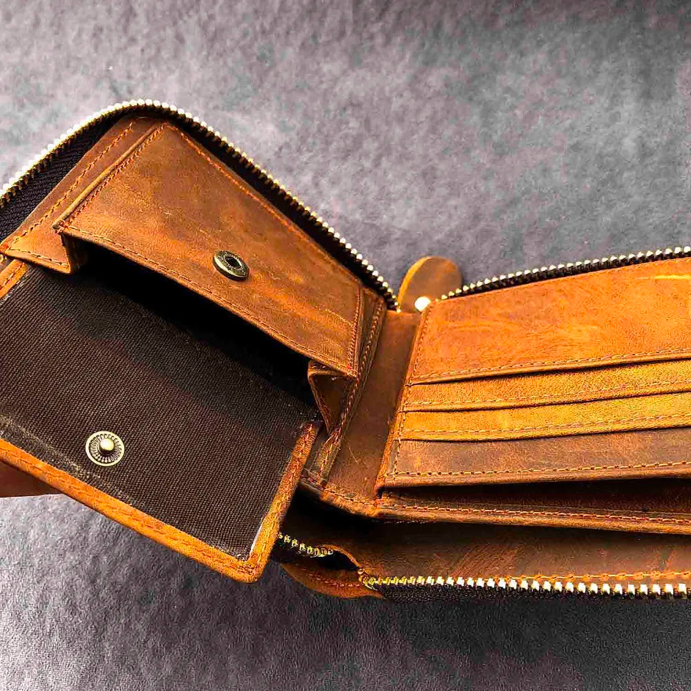 RFID Blocking Leather Wallet for Men with Zipper