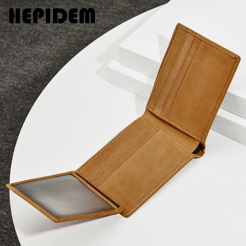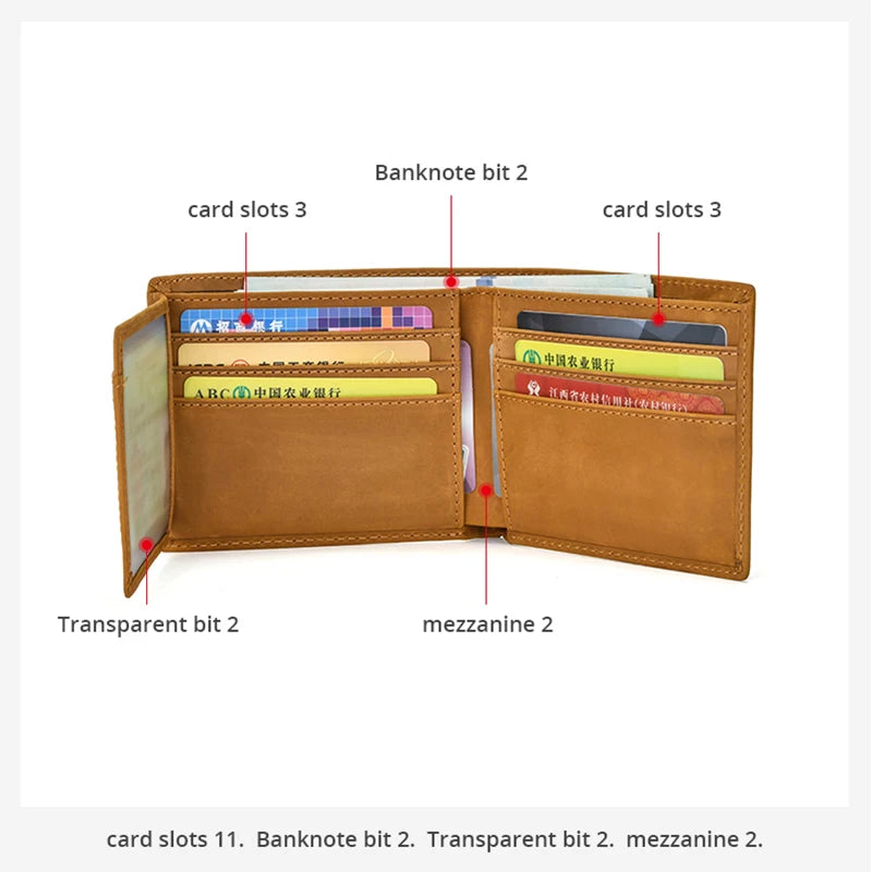 RFID Crazy Horse Leather Slim Wallet for Men