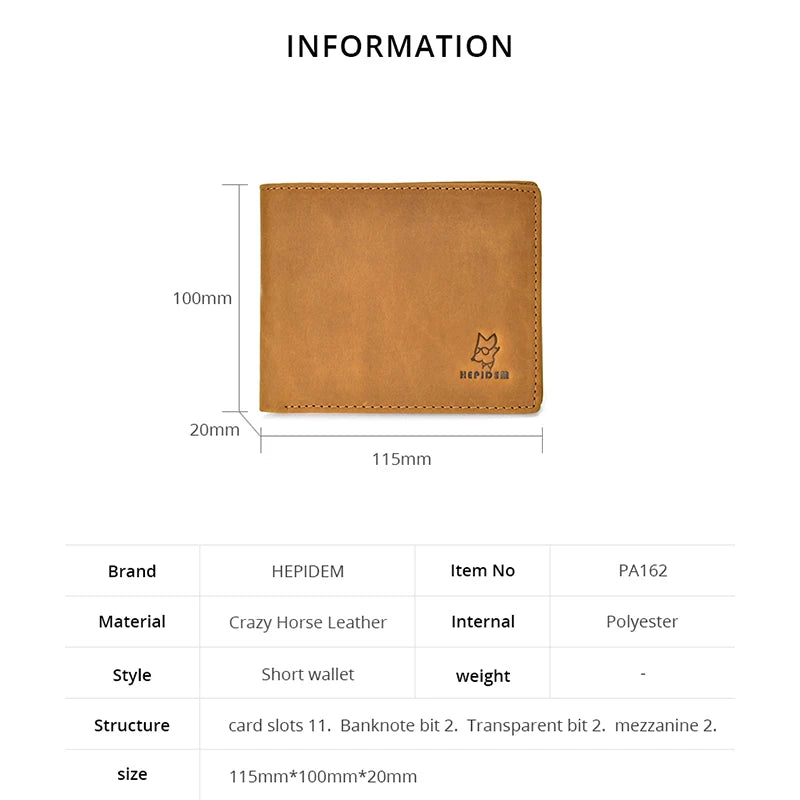 Description:Stay organized with this high-quality slim wallet crafted from genuine crazy horse leather. It features RFID protection to keep your cards secure.Features: Crafted from high-quality crazy horse leather Slim design for comfortable pocket carrying RFID protection to prevent electronic theft Features multiple card slots and a cash compartment Perfect gift...