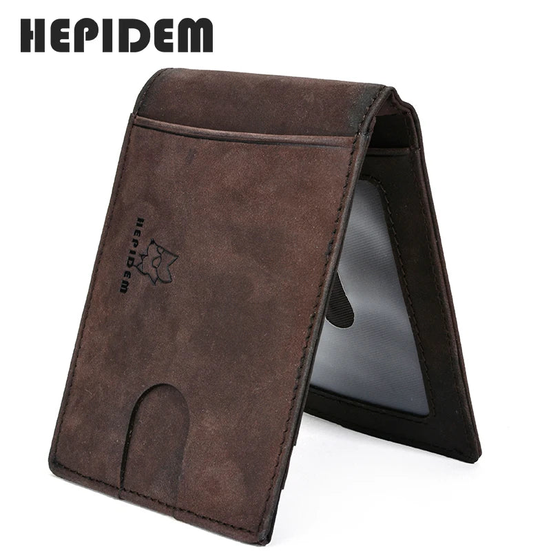 RFID High Crazy Horse Leather Slim Men's Wallet