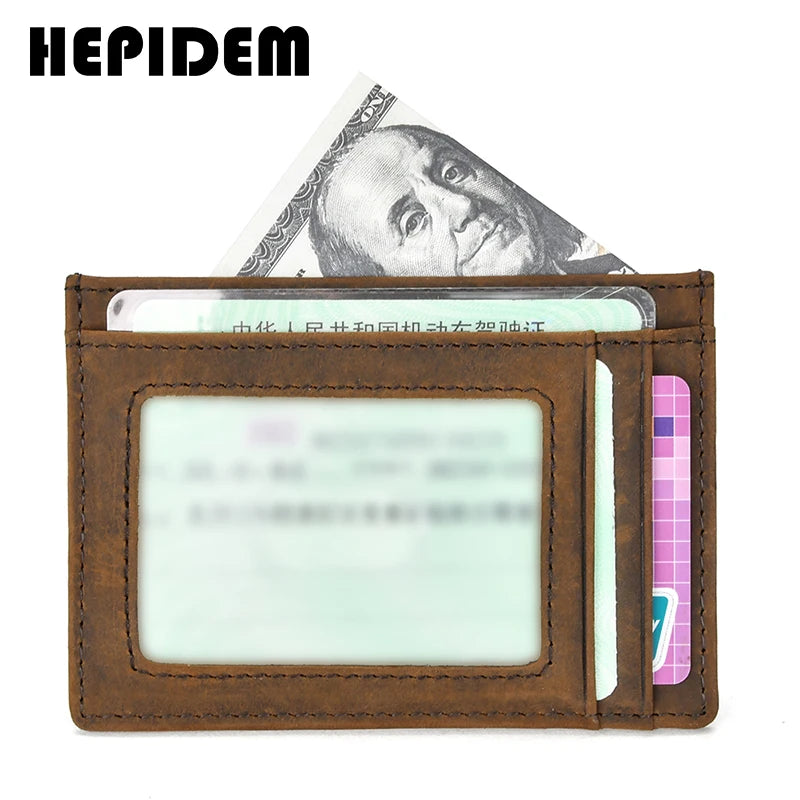 RFID High Crazy Horse Leather Slim Wallet Front Pocket Money Dollar Bill Mini Pu