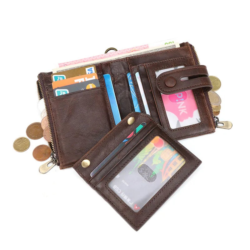 Description:Stay organized and secure with this stylish retro men's wallet made from crazy horse leather. Features multiple card slots, double zipper closure, and RFID protection.Features: Made from high-quality crazy horse leather for durability RFID protection to safeguard your personal information Double zipper design for easy access to cash and cards...