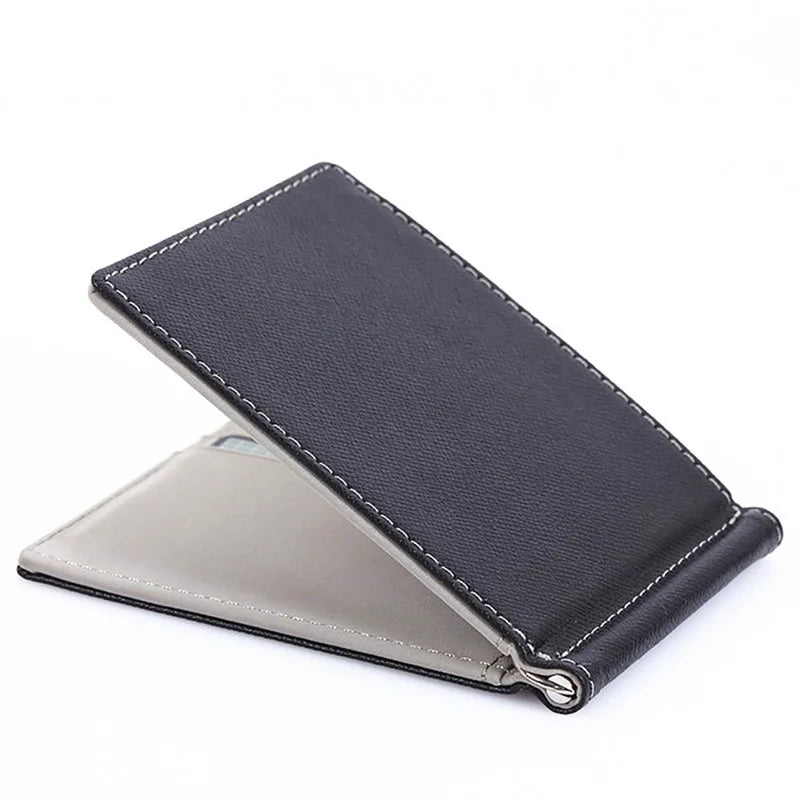 This men's wallet is made of high-quality PU leather, featuring a compact and thin design. It includes money clips for easy organization and access to cash.