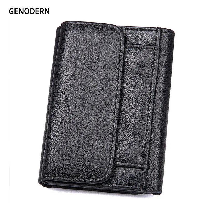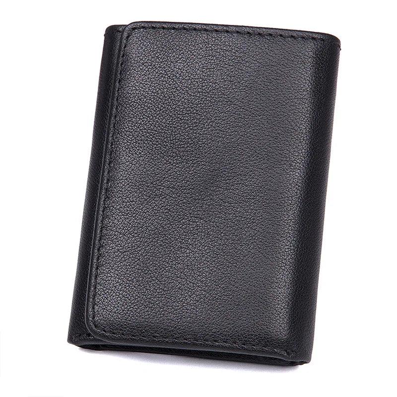 Short Trifold Leather Men Wallet with Hasp