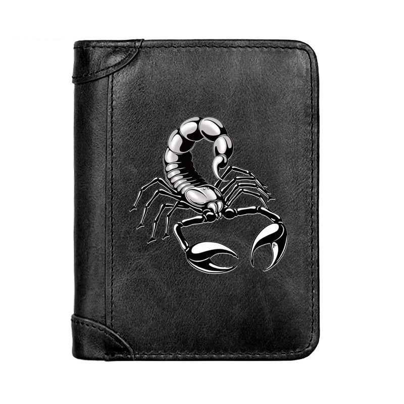 This real cowhide wallet features a stylish silver scorpion printing design. It's a short purse perfect for men with a taste for unique accessories.