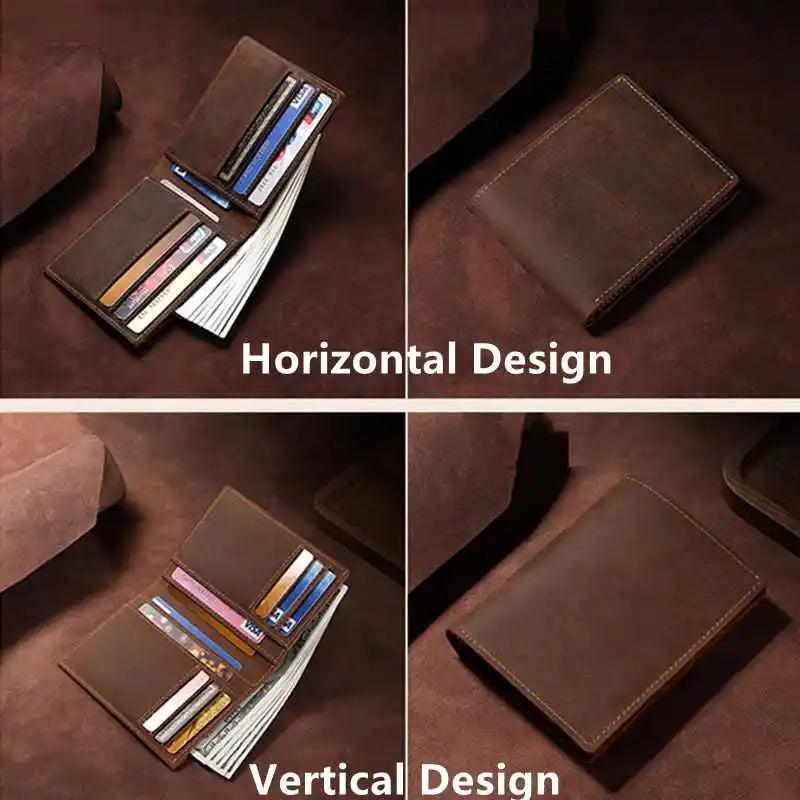 Slim Crazy Horse Leather Wallet with RFID Blocking