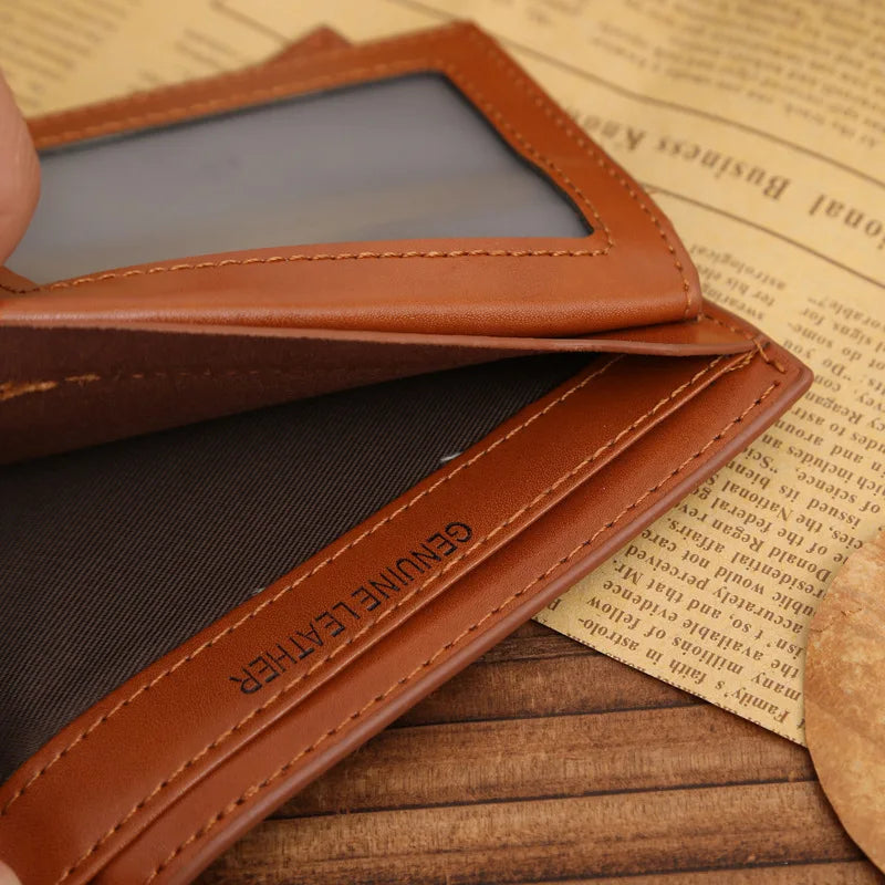 This small and slim wallet is made of high-quality leather, perfect for keeping your money and cards organized. It features a handy portfolio design that is both stylish and functional.