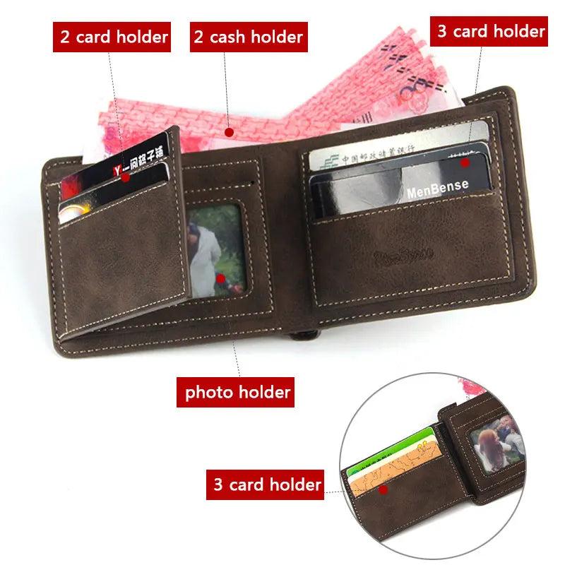 Keep your essentials organized in style with this slim men's wallet. Made of high-quality PU leather, it features a photo holder and classic 3-fold design.