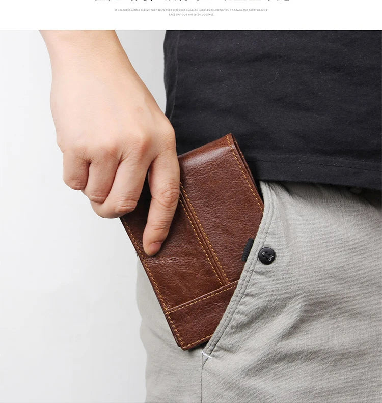 Small Leather Men's Mini Purse Wallet Slim with Photo Slot Coffee