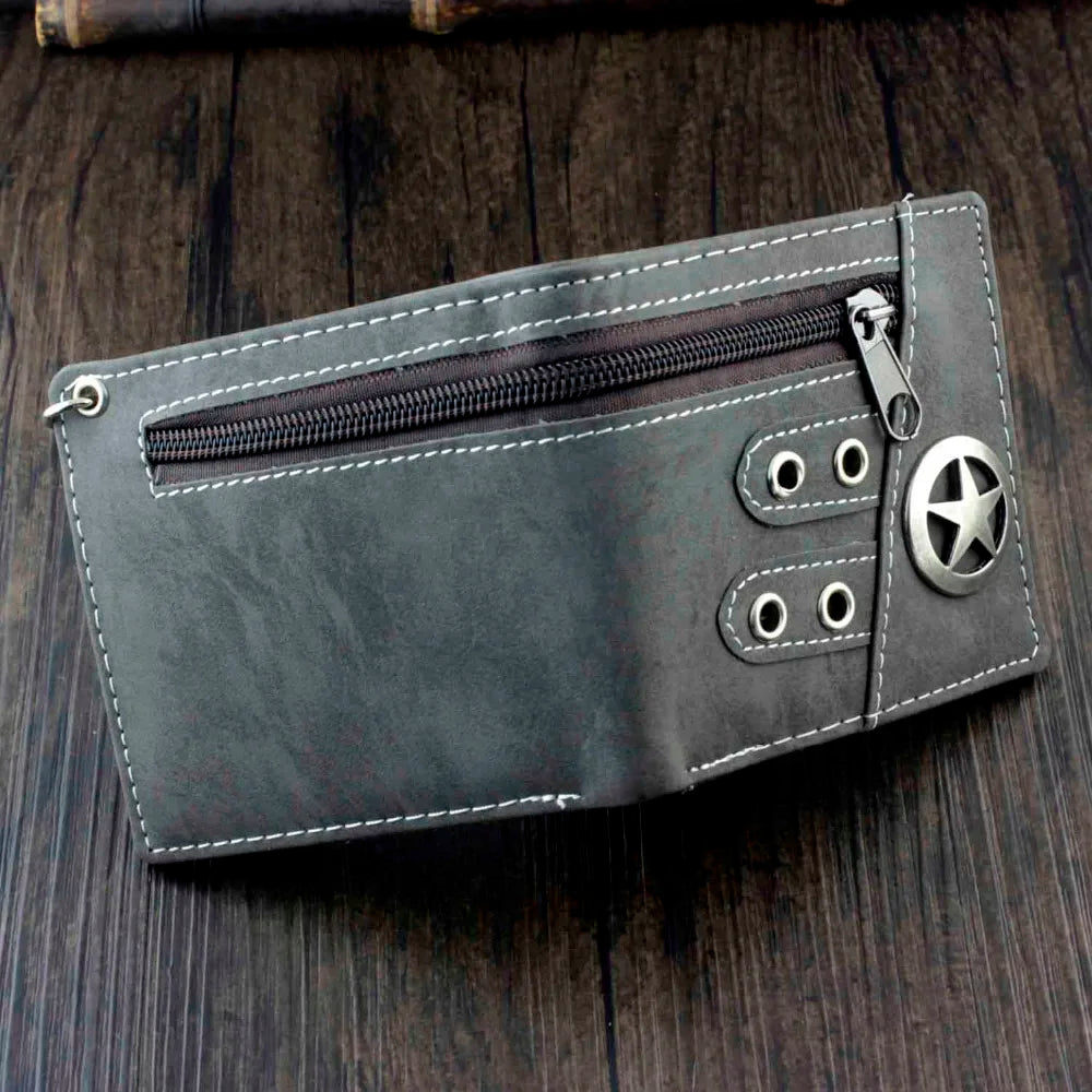 Star Men Boys Casual Wallet with Zipper Anti-Thief Chain