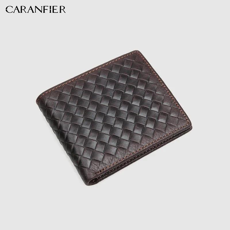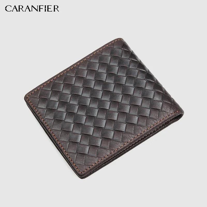 High quality Top Cow leather men's wallet with short style design. Features unique knitting pattern. Perfect for carrying cash and cards.