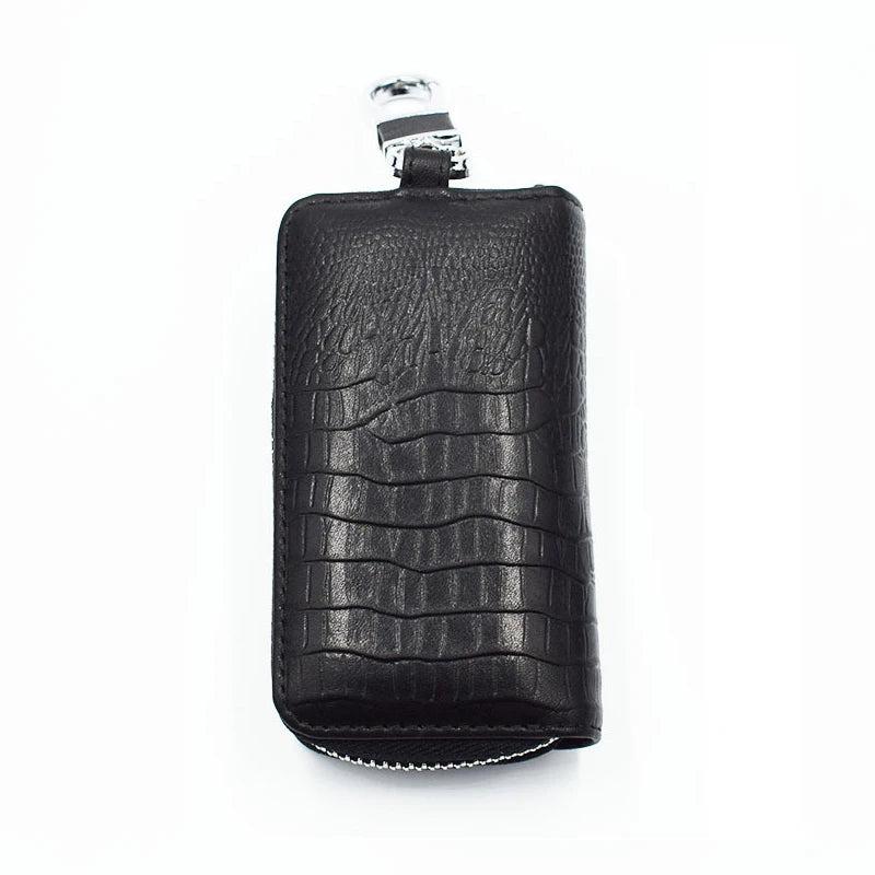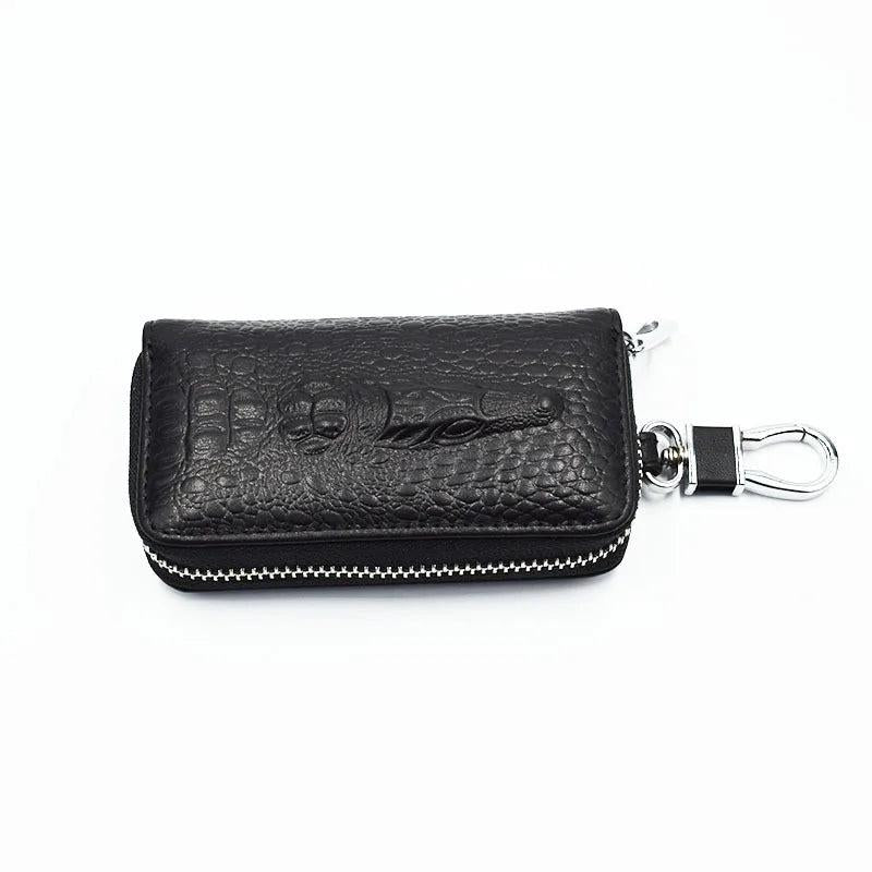 Keep your keys safe and organized with this stylish leather key wallet. This smart housekeeper features a crocodile pattern and plenty of space for your keys and other small essentials.