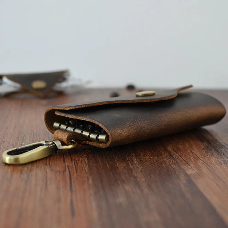 Vintage Leather Key Holder Wallet 6 Hooks - Men Key Housekeeper Bag