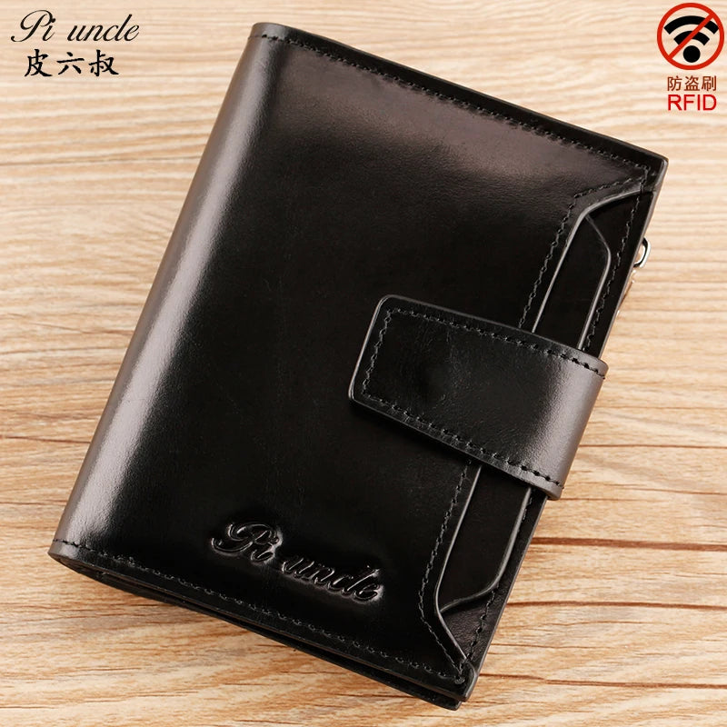 This stylish vintage men's wallet is made of high-quality leather and features a zipper pouch for added security. It is compact and slim, perfect for carrying in your pocket or bag.