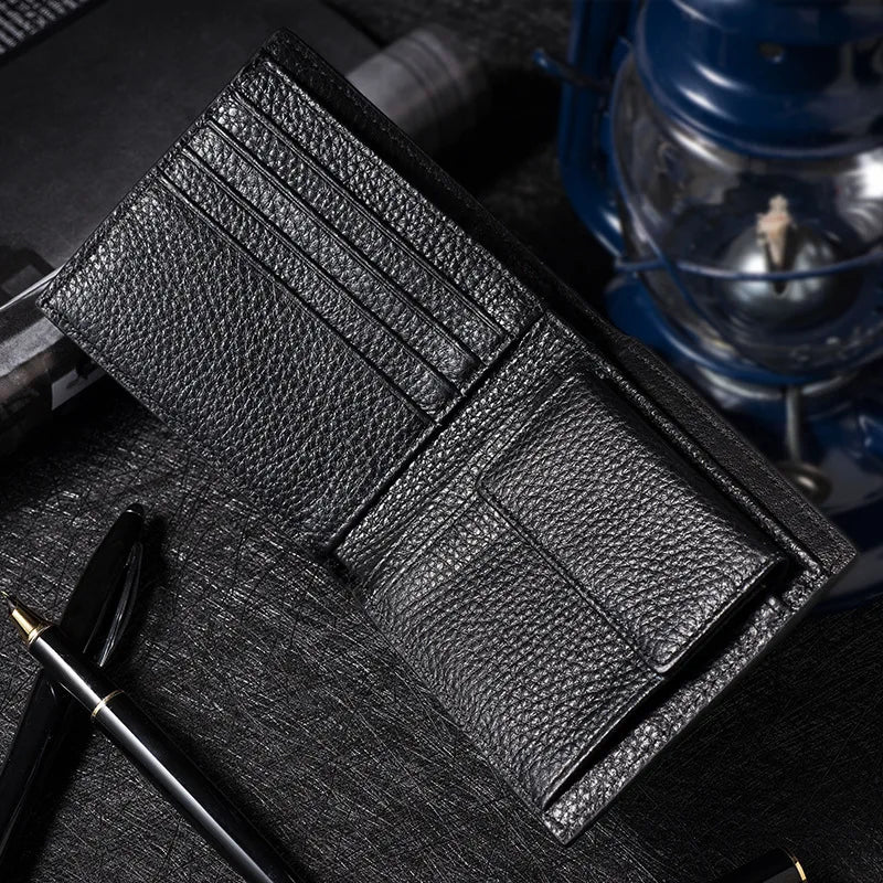 This stylish VM KISS Leather Short Wallet is perfect for men. It is small in size and can hold money and cards securely. Made with high-quality leather, it is durable and long-lasting.